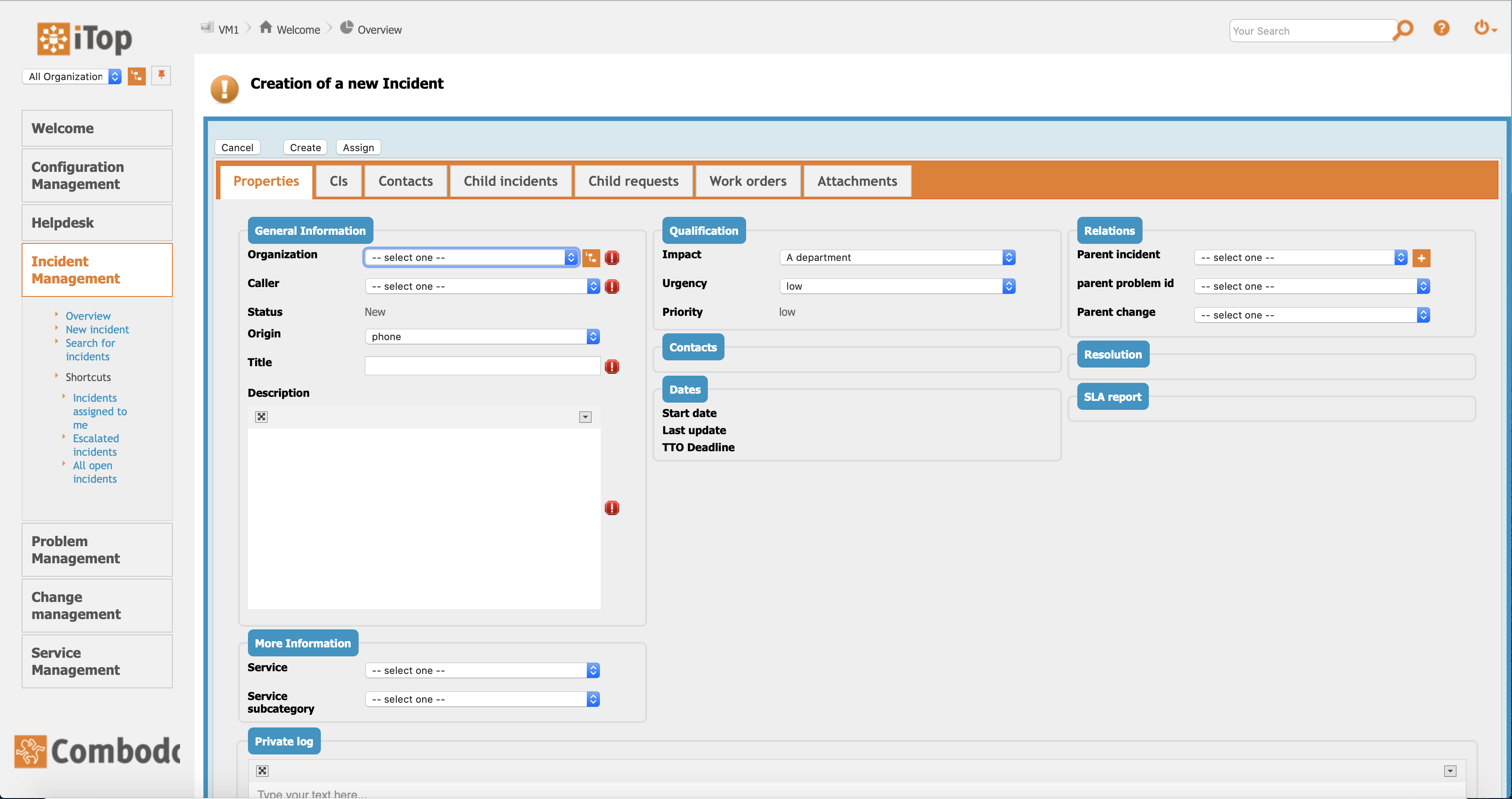 Ako prvé teda vytvoríme záznam nového incidentu. Predpokladáme teda krátky scenár popísaný vyššie, tzn. incident nahlásený používateľom org. demo telefonicky, ktorý hlási nefunkčnosť aplikácie Sales Web Site, napr.: "Nefunguje Sales web site aplikácia."